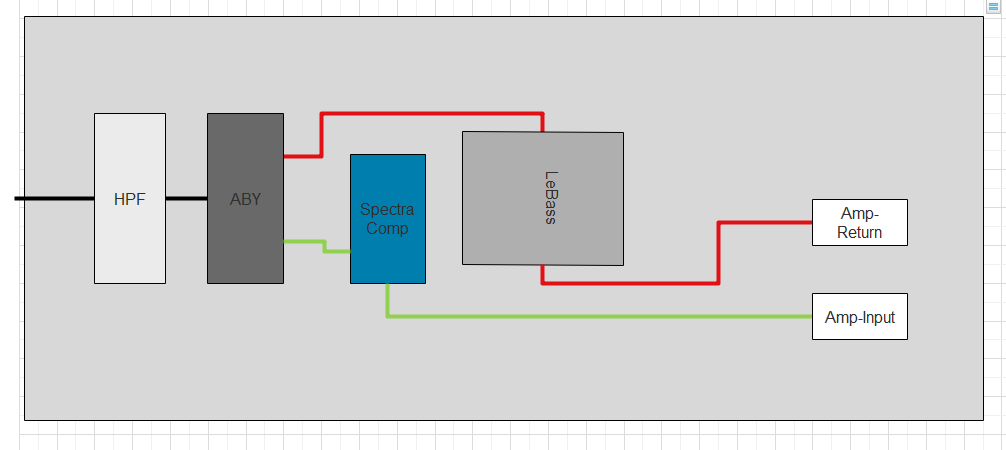 Im Prinzip kannst Du den Vong und den Tuner auch durch das Stomp ersetzen...es hat einen global EQ, der auch HPF/LPF macht...