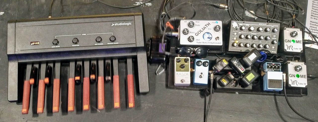 Im unteren Teil des Boards seht ihr die Looperwerk Patchbay, durch die ich 1x Eingang und 2x Ausgang "schleifen" möchte.