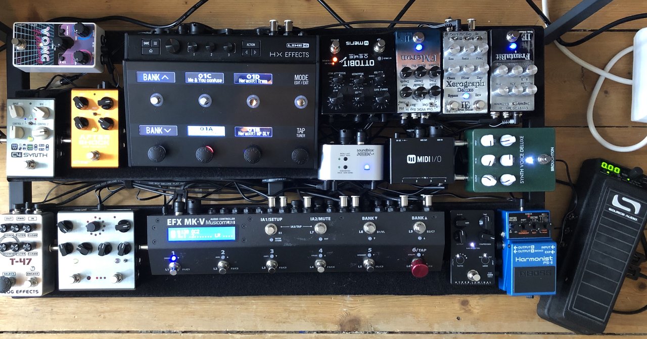 (habe auf meinem board: Lehle Mono volume, Vong, MXR analog delay, MXR Octaver, MXR Envelope filter)