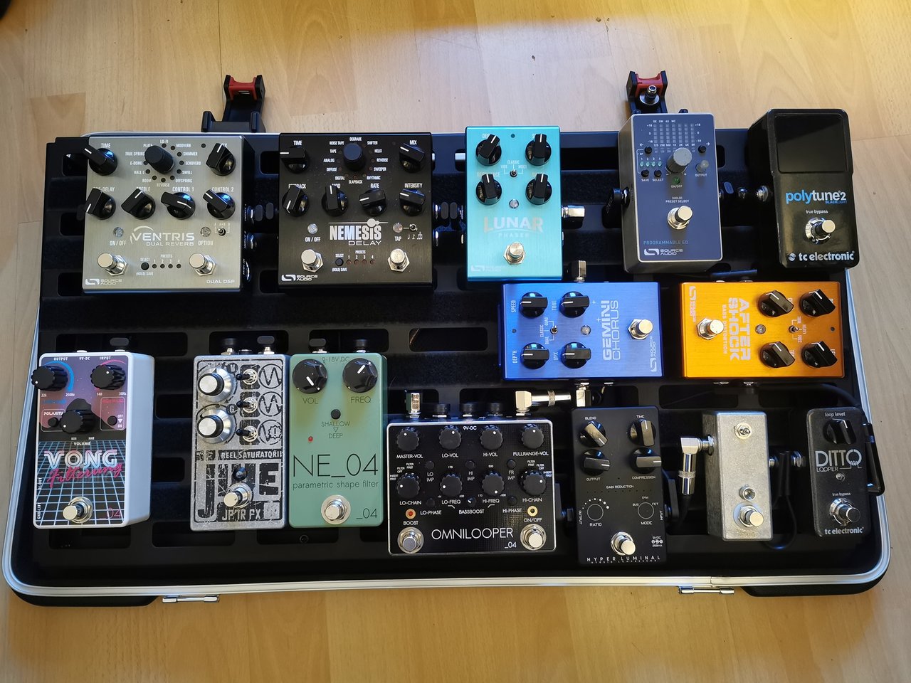 Alte Boards verkauft bzw. noch am verkaufen und ein "Rockboard" gegönnt. Da auf meinem "Modulations"-Board ein paar Pedale verschwunden sind, wollte ich wieder alles auf Einem haben: