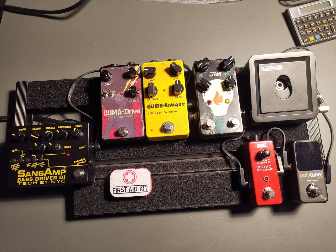 Der immer wieder gute SansAmp BD kann auch noch durch den EBS MicroBass II abgelöst werden, so dass die OD-Pedale dort in die regelbare Effekt-Schleife wandern, das hat Vorteile.