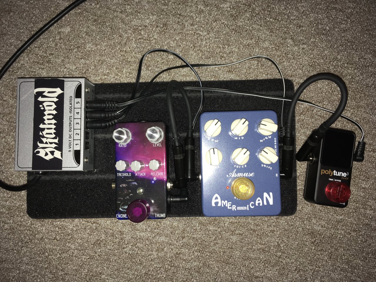 Viel hat sich an meinem Board nicht geändert. Aber den TripleIQ habe ich wieder gegen einen MXR getauscht, die Pedale etwas umsortiert und das GAS-Pedal musste einfach sein. Dafür gab‘s noch eine kleine Patchbox im Eigenbau.
