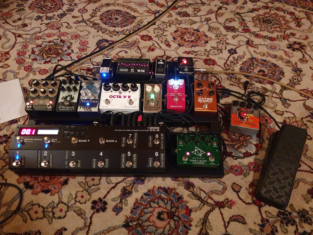 Im Moment ist das noch alles andere als einfach für michMan kann die Kombination einerseits einfach per Gear regeln, wie dieses Boss Effects Switching System auf @Bassman135 Board.