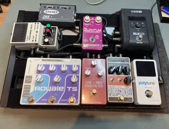 Auf das zweite Board kommt der Growling Krizzly, der Paranoia und ev. ein Chorus, dazu ein Line 6 G50, Tuner und DI-Box.