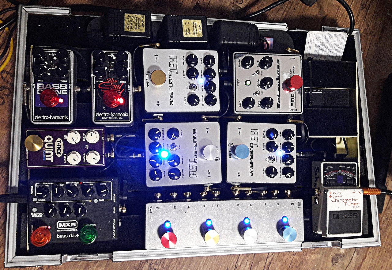 So mache ich es: Vong immer ans Ende der gesamten Pedalkette, noch nach dem DI. Dann kann der Mensch am Pult machen was er will und du für dich auch. Optimal (siehe einige Posts weiter oben) wäre dann noch ein zusätzlicher Vong am Anfang der Kette.Szenario 2: Mit Amp, würde ich auch dessen DI Out nutzen und den Preamp nur durchschleifen, weil er dann soz. als "Aktivelektronik" für einen meiner Bässe dient. Von der Überlegung her, müsst aber dann ja der HPF hinter dem Preamp sitzen, oder?
