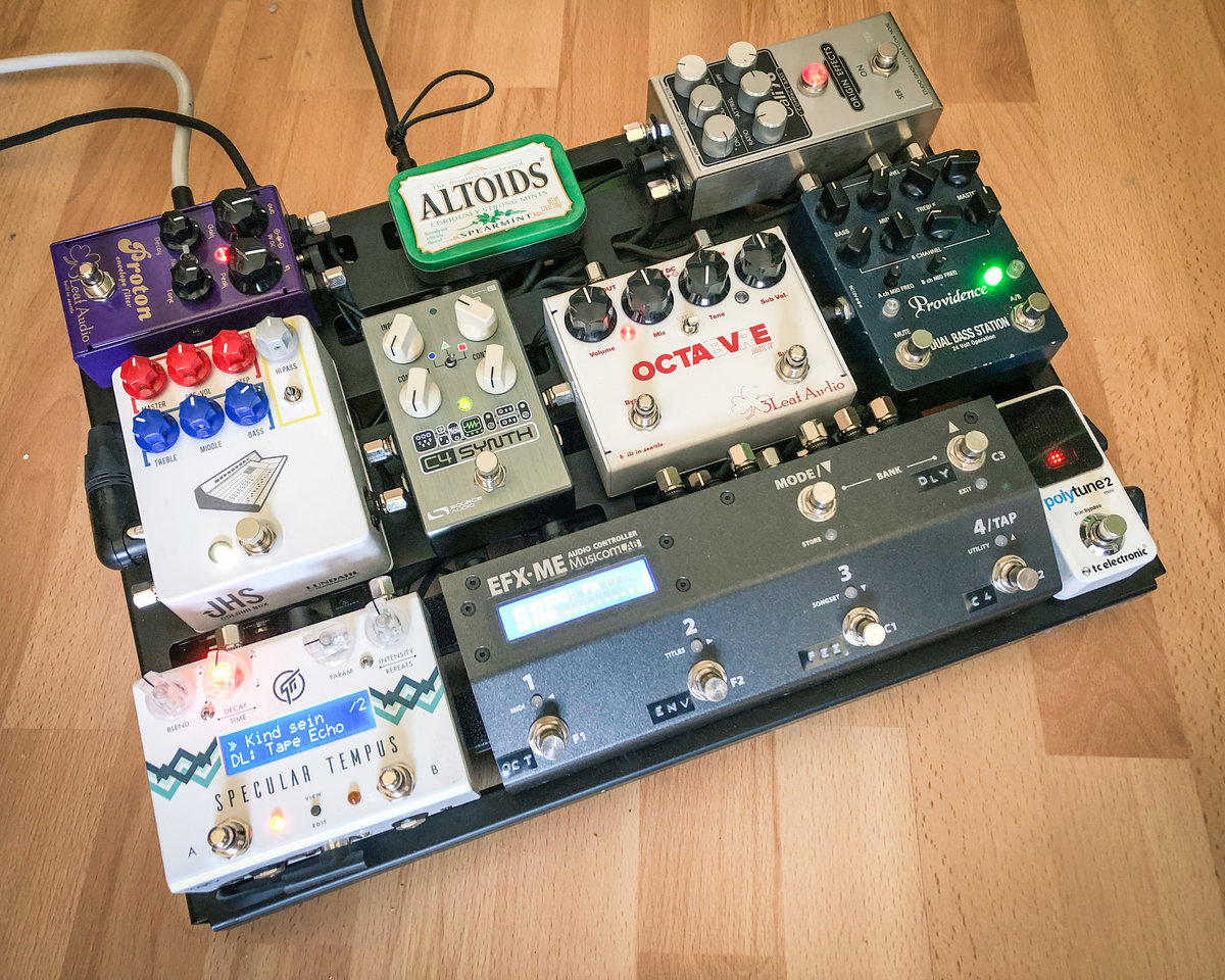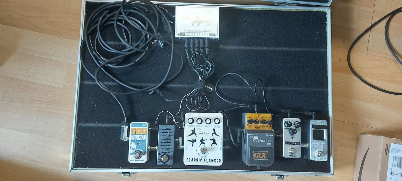 Das Neubaugebiet wurde verkleinert, hat jetzt leichte Hanglage, es kam noch ein Chorus dazu, und hört inklusive Tasche auf den schönen Namen "Gator Tote"...na warte mal ab, in 4 Monaten steht da ein Ding neben dem anderen und es wird um jeden Quadratzentimeter gefeilscht. Dann kommen noch flachere Kabel, weil mehr Platz, die Stromversorgung wandert nach unten, noch kleinere Pedale für noch mehr Real Estate usw. usw.