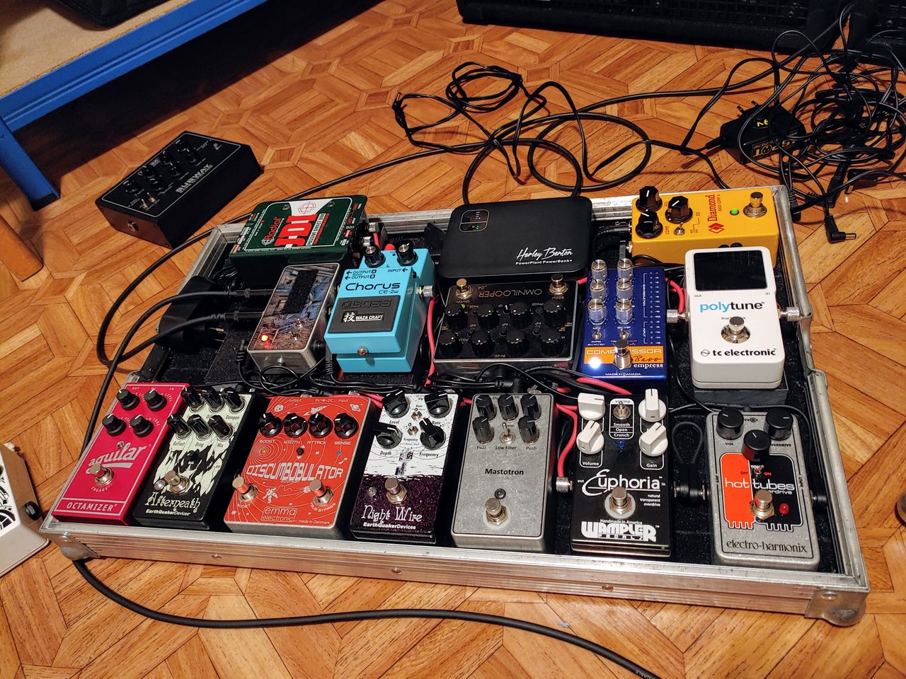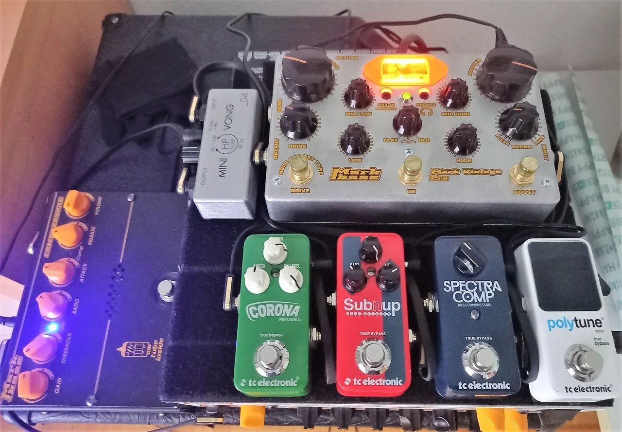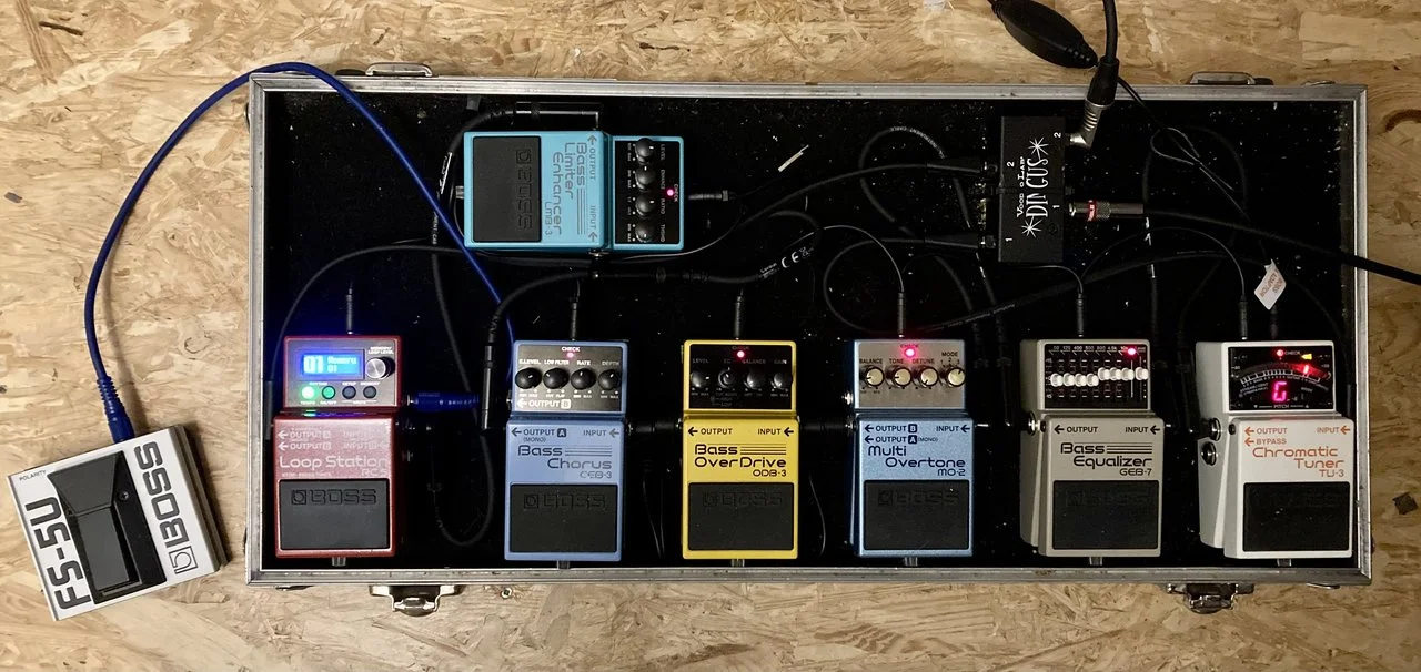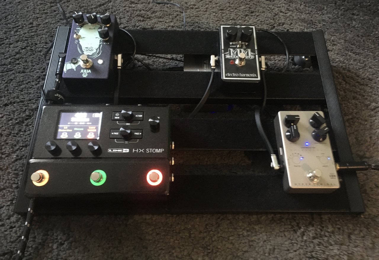 compressor, (on/off/tuner) hx stomp amp-modeling und/oder hx effects, metall muff distortion, analoge chorus/vibratio modulation. ende![]()