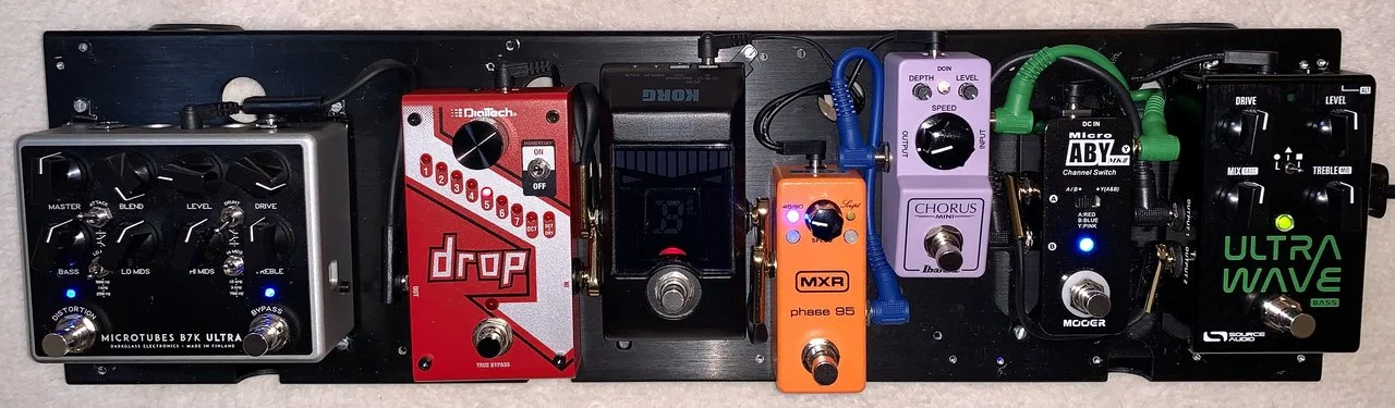 Erklärungsbedürftig ist das UltraWave. Ich verwende es für Kompression (Dynamik, Sustain), Eq-ing, Overdrive/Distortion mit ausschließlich eigenentwickelten Sounds. Wahrscheinlich das zur Zeit unterschätzteste Pedal. Aber ziemlich steile Lernkurve.