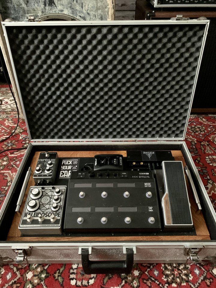 Bis auf das Netzteil und die Funke sind die Effekte mit Mounties festgemacht, Strom fürs Helix kommt vom Originalnetzteil, welches unterm Board mit verbaut ist - Bilder davon gibt’s wenn ich alles ordentlich verlegt habe.