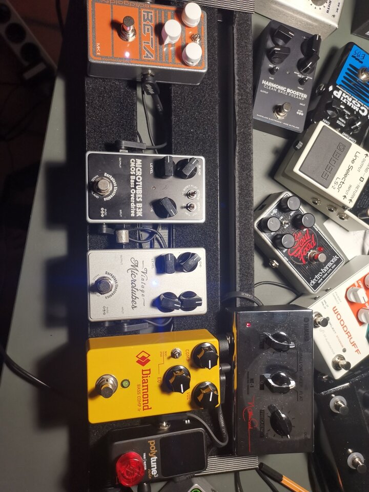 Mir gefällt der Ampeg Opto Comp aber immer noch, also ist er auf das kleine Board zu dem SCR-DI umgezogen.