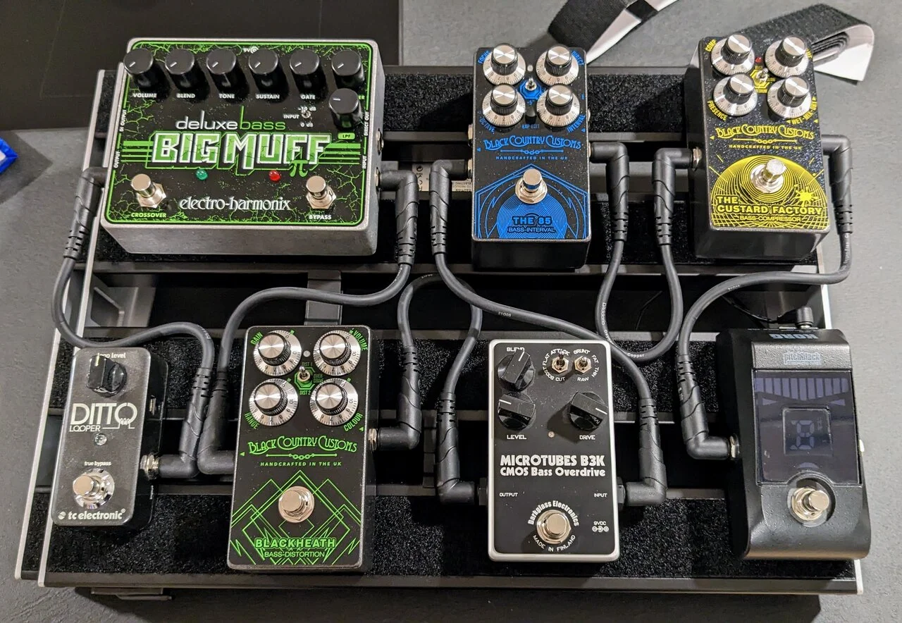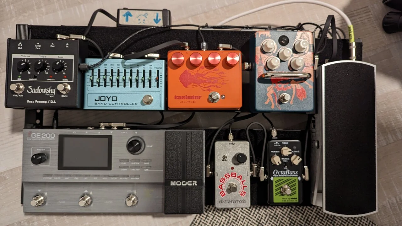 Vor dem Helix hatte ich ja auch noch ein Board mit diversen Pedalen drauf. Dies hab ich dann (zuerst natürlich bassrelevante Pedale rausgenommen) an unseren Gitarristen entsorgt