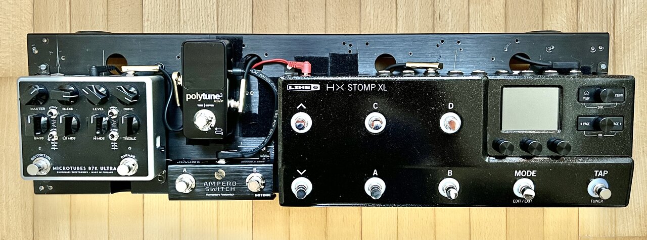 Okay, Planänderung: Der Preamp muss gehen, dafür darf der EQ bleiben und wird wieder durch ein Hotone Jogg ergänzt. Kompressor fliegt vorerst auch runter, dafür kommen Delay und Flanger dazu...Anhang anzeigen 670764