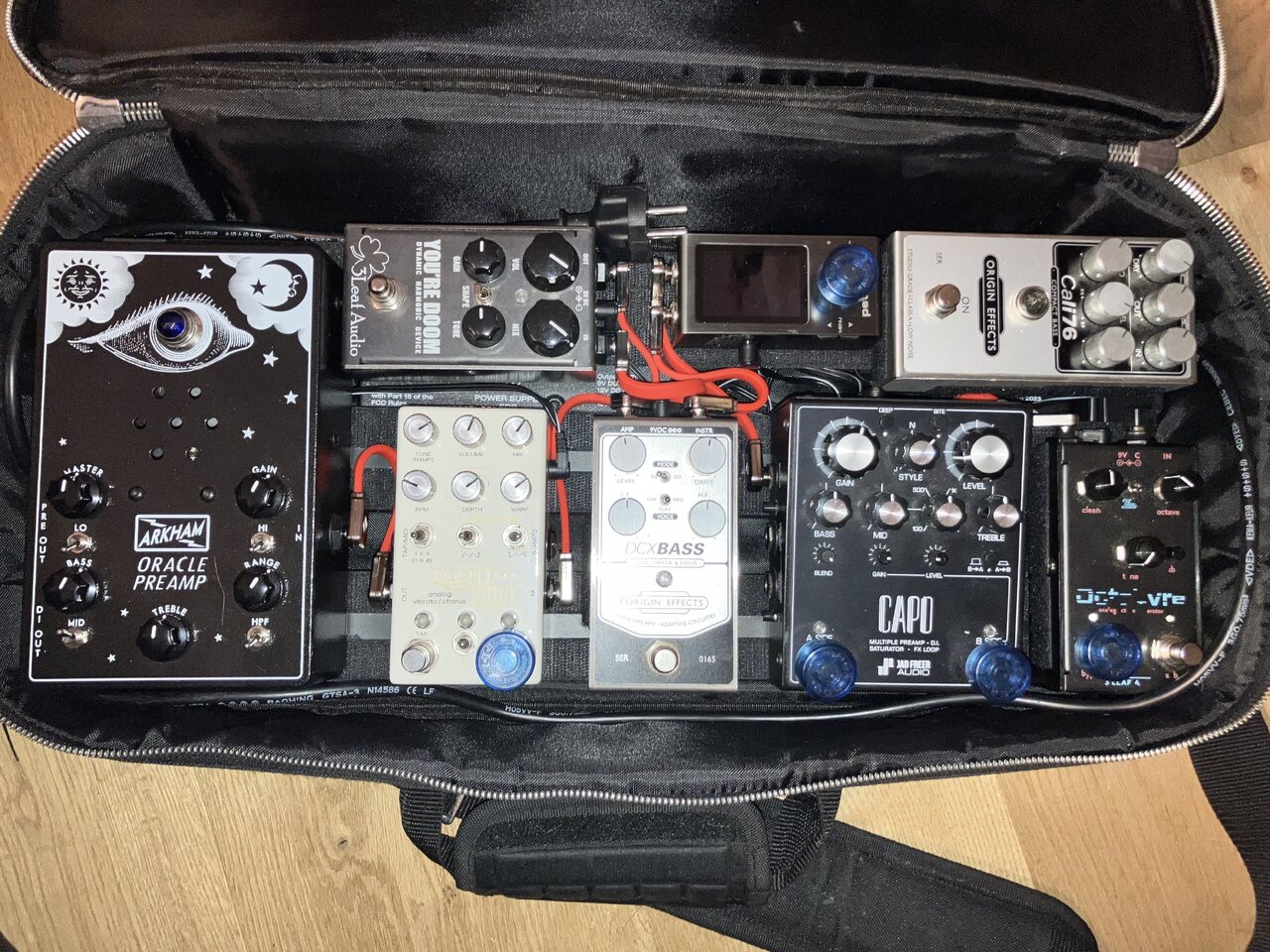 Mir war’s wichtig, über das Cioks auch 12/15/18 V zur Verfügung zu haben… hatte schon einige Pedale auf dem Brett, die mir mit 9V gar keinen Spaß gemacht haben, mit etwas mehr aber gleich viel mehr (z.B. JPTR Jive, Diamond Bass Comp, Darkglass X7).Hab ich mir aus Interesse auch schon mal angeschaut, ist natürlich die Deluxe Version. Ich wollte hier halt so klein wie möglich und nur das Nötigste um mit 1x10“ Box und Gigbag zur Probe laufen zu können. Hab noch ne kleinere Powerbank mit 4000 mAh, die reicht für die 3 Treterchen wahrscheinlich 10 Proben weit.