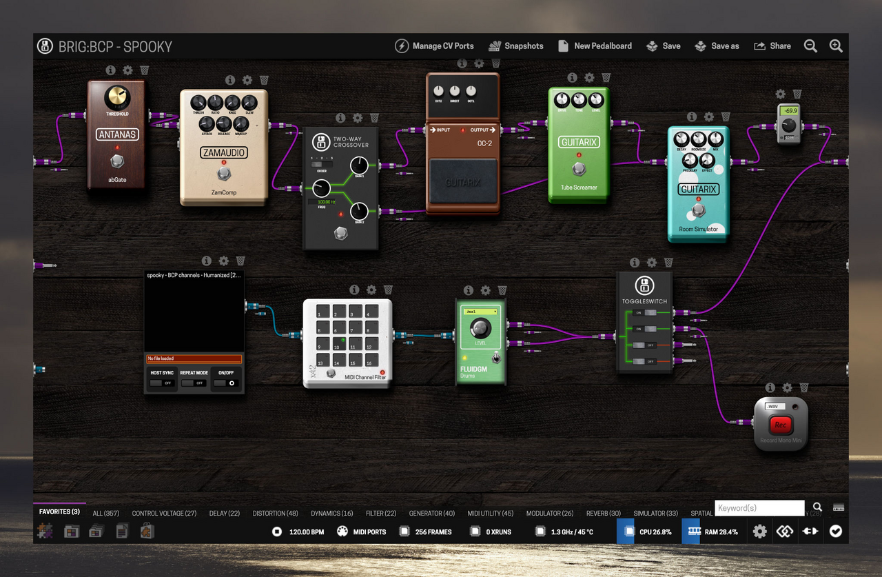 Der Dwarf ist ein Multi-F/X-Gerät und wird über einen Webbrowser konfiguriert. Ich verwende derzeit diese KonfigurationErklär sie sich! Was kann das und wie klingt das?