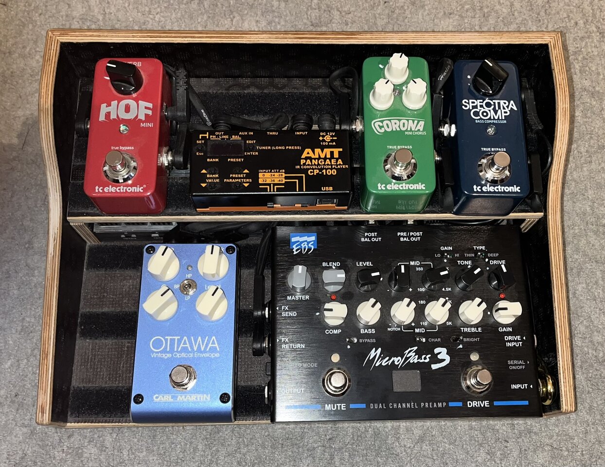 ...das CP-100 hatte ich auch mal, cooles Teil, wenn man es mit guten IRs bestückt!Das, plus meine Bässe und Inearing ist alles was benutze. Das ganze Board ist nur 32x24 cm groß und hat alle wichtigen Anschlüsse nach außen gelegt. Spannungseingang und Status-LED für die Stromversorgung. Es gibt die passende gepolsterte Tasche dazu. Ein Ventilator für die Spannungsversorgung kommt noch dazu und evtl. eine Batterieversorgung (Makita Akkus).