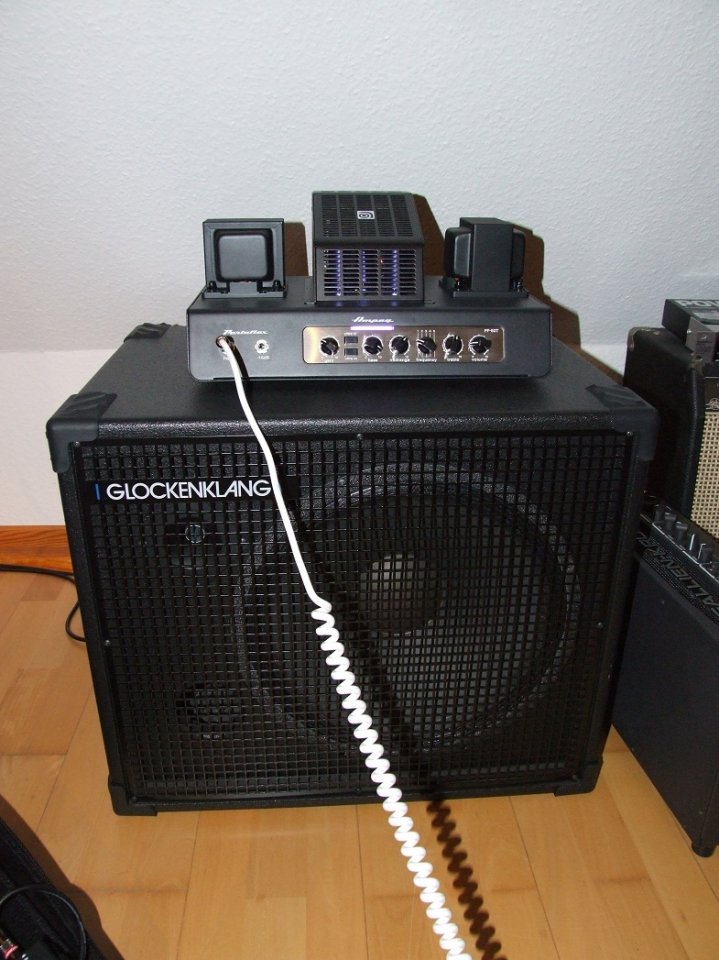 Der Amp bzw. der Sound und die Speakersektion der Combo hat mich vom Sound her dann so überrascht, dass ich zunächst daran gedacht habe, noch eine MBC 410" dazu anzuschaffen. Punchy, direkt, klar, brilliant fällt mir zu der Box ein, aber Versuch macht Kluch, die Peavey TVX410" @ 4 Ohm hat dann sehr gut mit dem Combo harmoniert - und mit der SWR 212 @ 8 Ohm war das Stack dann reiner Wahnsinn.