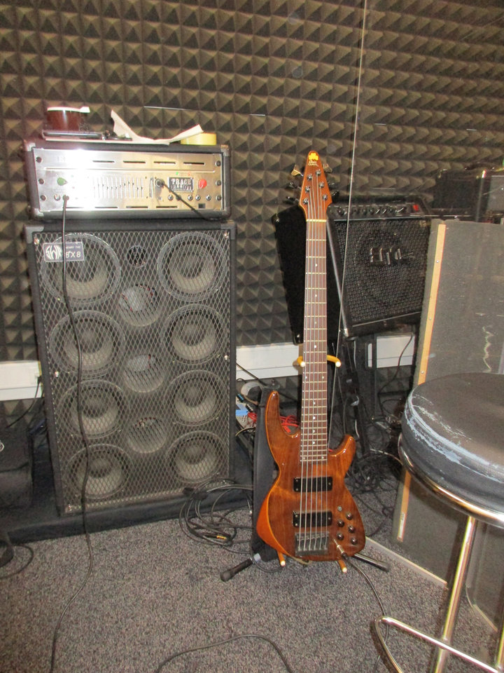 Der neben dem Fodera-Clon (Santander, guter Arbeits-Bass für den Proberaum...) ist ein Ibanez RoadstarII. Der ist auch auf dem vorletzten Bild zu sehen, mit einer vorübergehend aufgeklebten Pickguard-Folie. Das MM-Pickguard ist nur mit Papier-Kleber draufgeklebt, ich mag keine "nackten" Bässe, ausser sie haben einen durchgehenden Hals oder irgend eine andere Ablenkung vom blanken Holz. Der andere Ibanez RoadsterII hat deswegen auch ein MM-Pickguard drauf. Der braune Bass auf dem letzten Bild ist ein Bassic.de-Veteran, der bleibt so, bis auf einen anderen Precision-mäßigen Hals vielleicht.