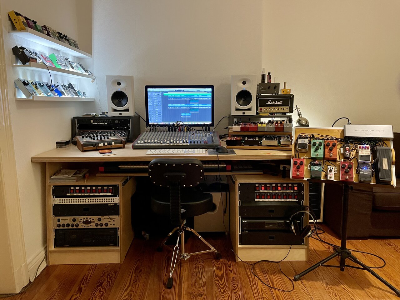 Das Pedalboard auf dem Notenständer steht da jetzt nur weil ich es heute fertig gebaut hab und ich erst mal Grundeinstellungen vorgenommen hab. Ist nur für Gitarre