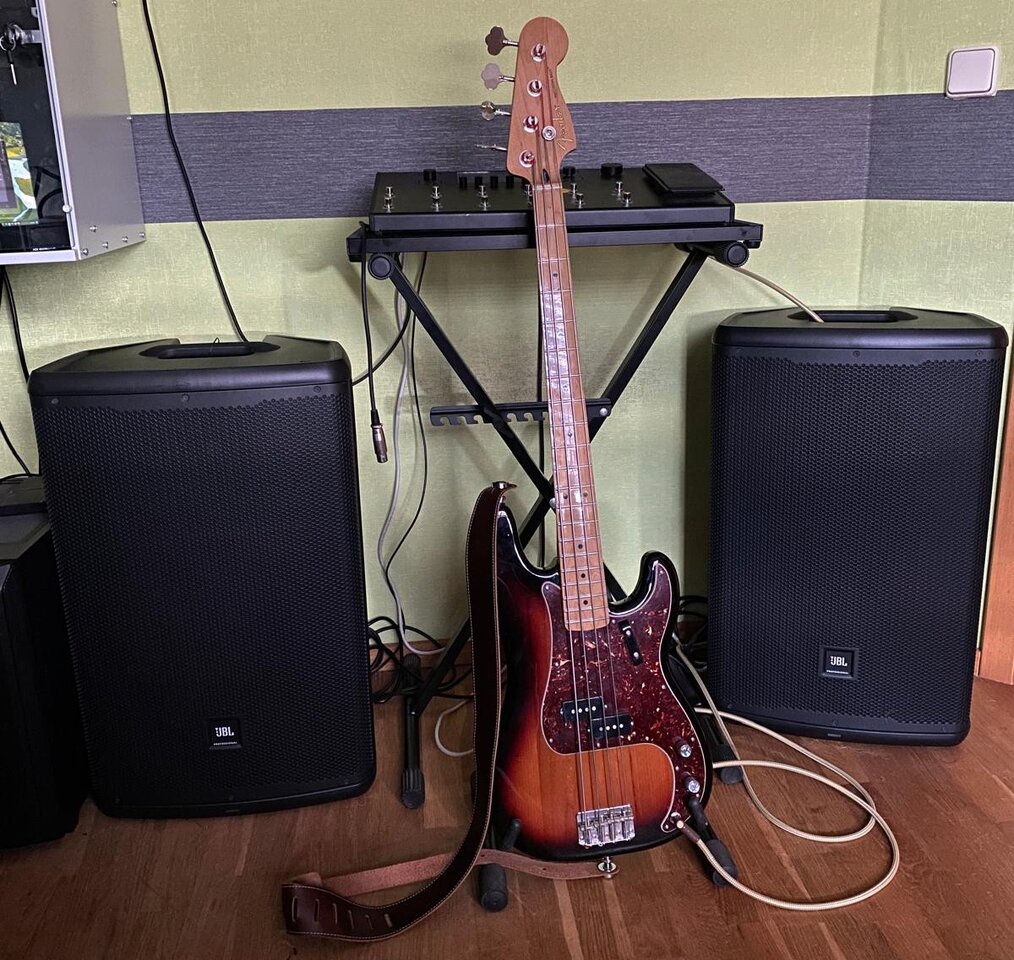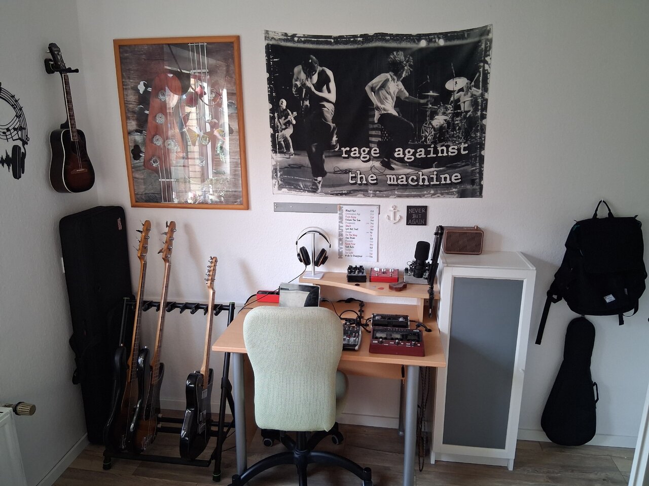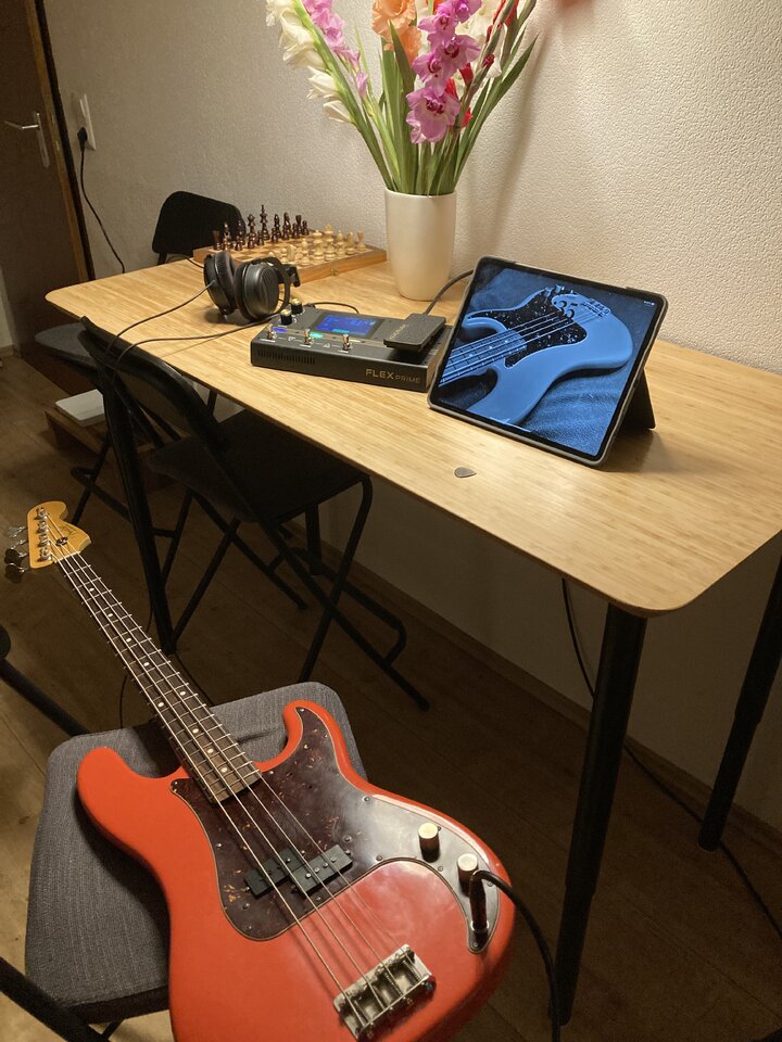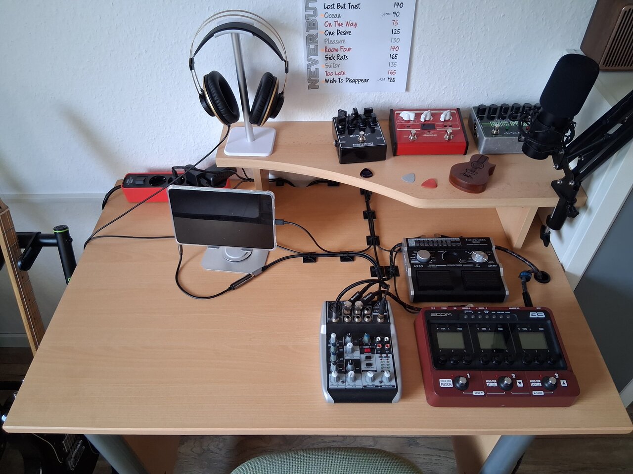 Zuhause spiele ich generell über Kopfhörer. Das Zoom B3 ist schon lang nicht mehr im Proberaum im Einsatz. Aber hier eigenet es sich wunderbar, um mein Pedalboard zu emulieren und eventuell mal mit neuen Effekten rumzuprobieren.