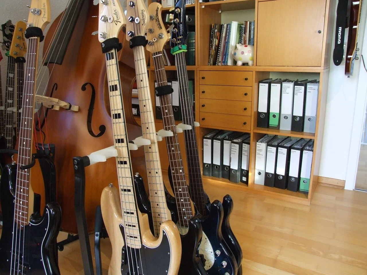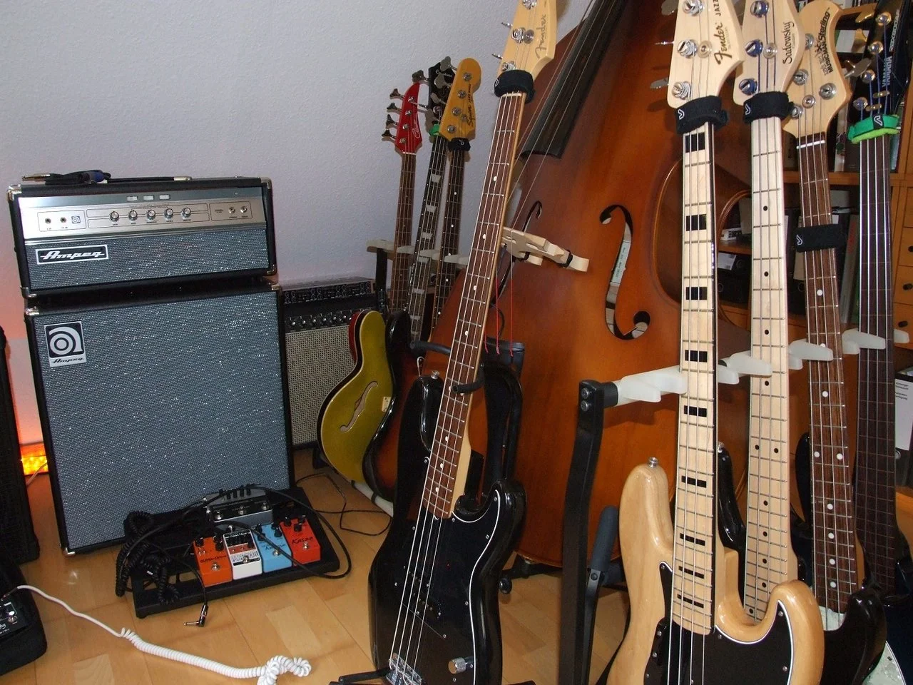 In einem anderen Zimmer steht irgendwo ein billiger Preci. Im Proberaum stehen noch ein Kontrabass und noch ein billiger Preci.Ein Zimmer nur für den KB... Luxus pur! Die anderen Bässe stehen im Zimmer Nr. 2?