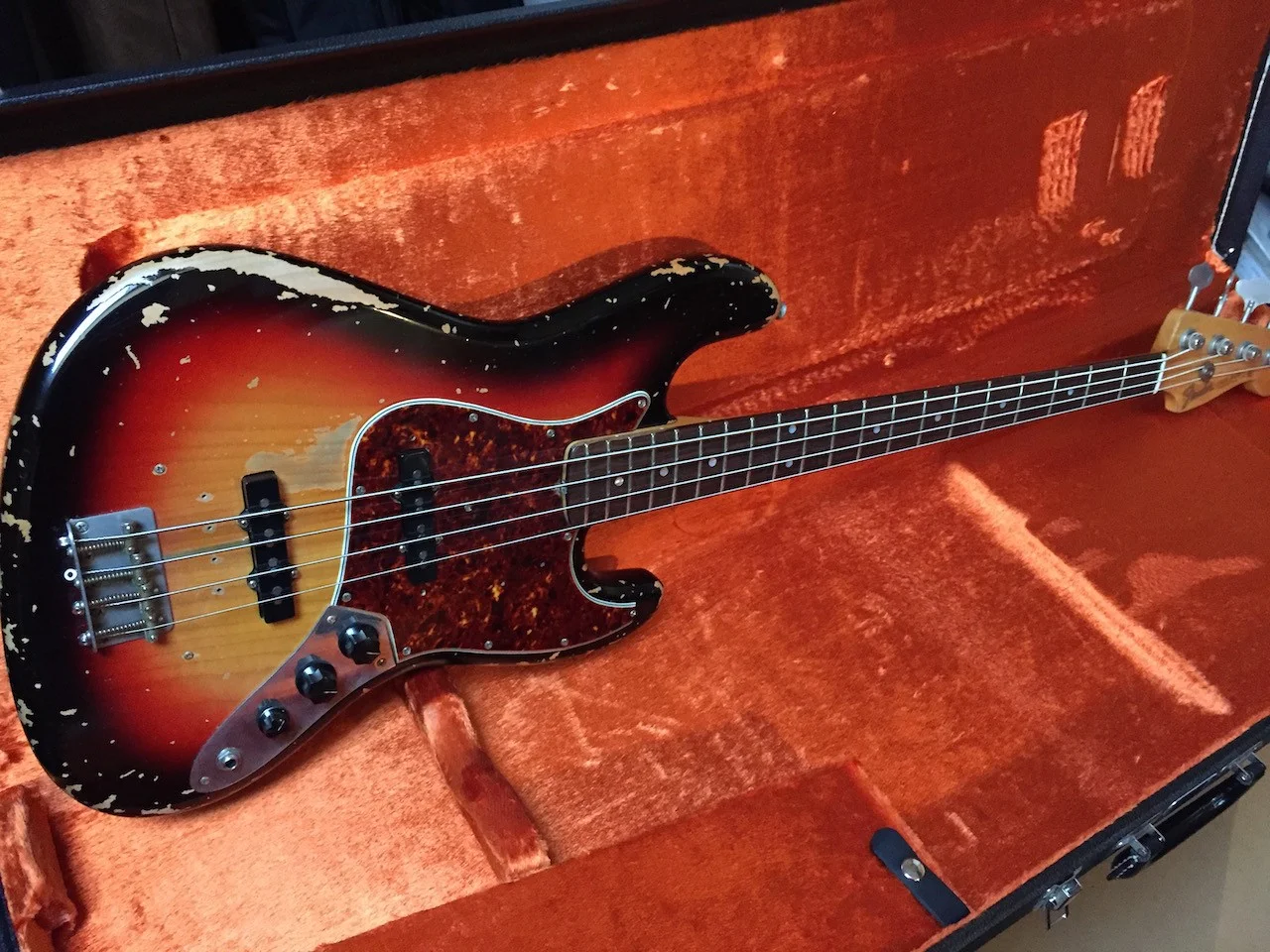 1962 Fender Jazz Bass replica made by John Elliot from Bravewood Guitars
