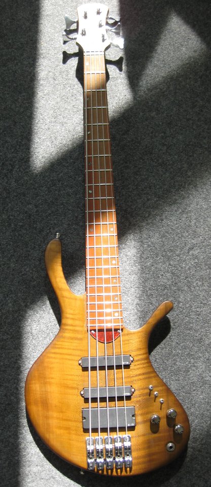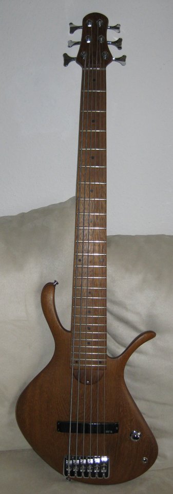 Daneben ist BolleBass #2, der Fretless... da kommen noch andere Knöpfe und ein Schalter dran; fertig geölt ist er auch noch nicht, dementsprechend fehlen noch die Logos an der Kopfplatte.