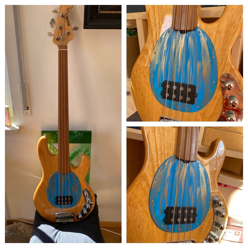 Meine Frau hat jetzt in der Corona bedingten Freizeit das Pickguard von meinem Fretless verschönert :-)