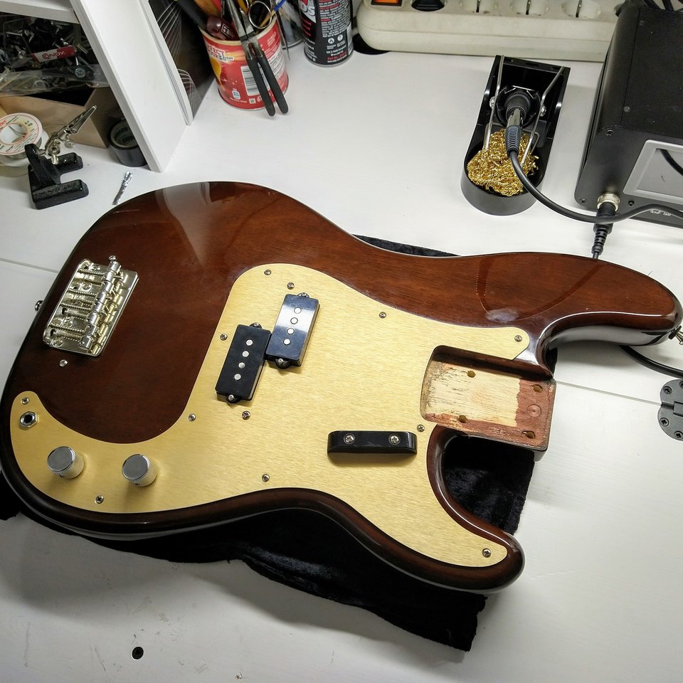 Der ist doch hübsch. Ich würde ihn ja noch mit Tortoise Pickguard und Creme-Pickups und einem Jazz-Neck "verschandeln."