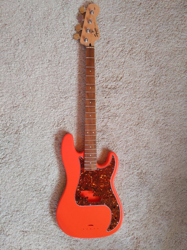 Wie ein paar Seiten vorher schon erwähnt, ein Linden Body mit einem Squier Affinity Hals von @yhawks. Hab jetzt erst mal MiM Mechaniken montiert die waren da und passen in die vorhandenen Löcher (bei Hals und Body haben die Schrauben auch 1:1 gepasst). Mit der Saitenlage bin ich noch nicht 100%ig zufrieden, fürs erste aber voll ok.