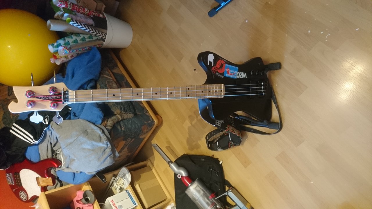 Den hab ich aus der Bucht. War über ein Jahr drinne gestanden, blau lackiert und komische Kopfform. Den Kopf habe ich gemacht (Siehe mein Fernandes Frankenstein).Wo ist der Hals her?