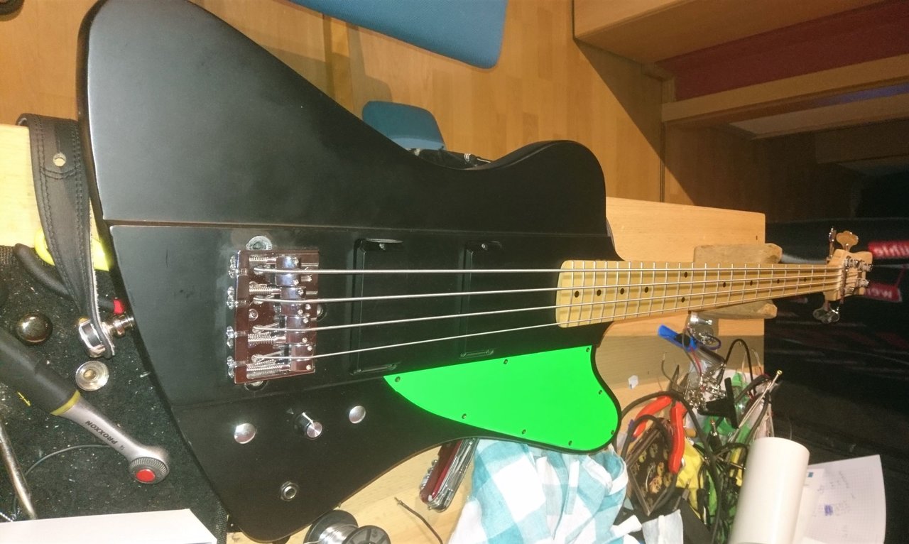 Der Bass klingt sehr gut, was mir gestern auf einer Session vielfach bestätigt wurde. Er hat schöne Höhen, klingt ausgewogen und sehr direkt und mulmfrei, was leider bei vielen anderen Precisions jeder Preisklasse nicht so ist... Das war der Grund, weshalb ich vor einigen Jahren meinen Matt-Freeman verkauft habe, da hat nix geholfen, weder Saiten-Tausch, andere Brücke, Elektronik, noch andere Pickups, es klang mumpfig...