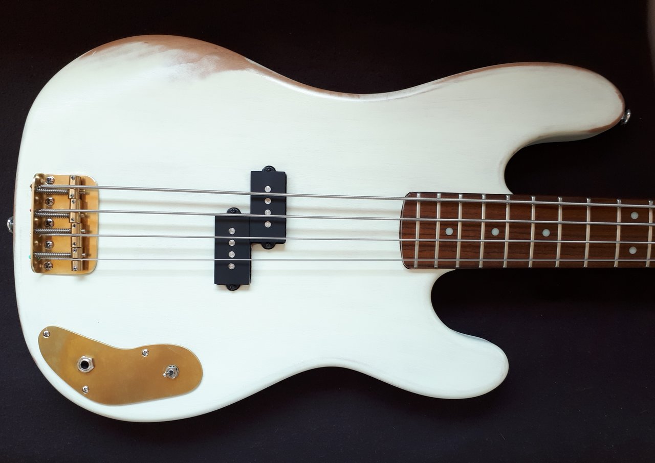 cooles konzept, ich finde die Abdeckung aber etwas unförmig, hätte mich da eher an nem preci pickguard orientiert...und hier wäre noch ein Bass der etwas minimalistischen Art.