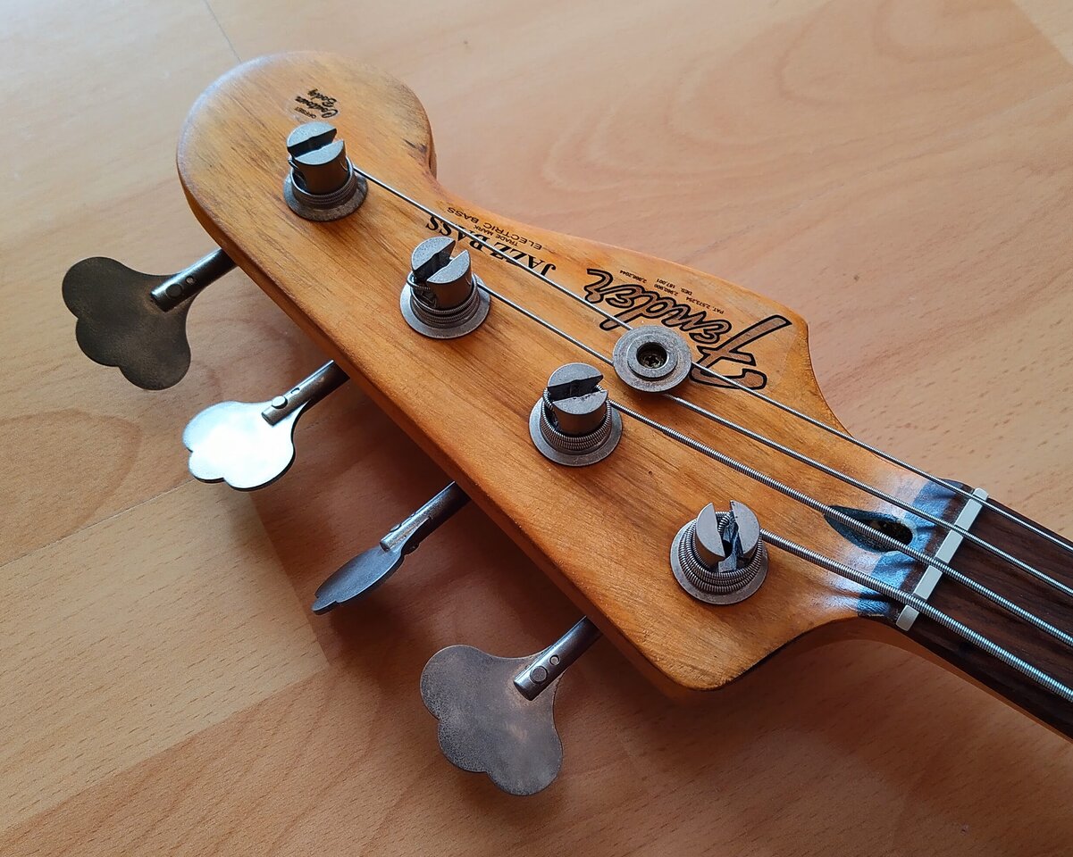 Übrigens: Alle Dings und Dongs und Macken sind echtes Relic, ich habe lediglich den vorher naturbelassenen Body etwas mehr ins "Honey" geduscht (über die Macken drüber) und jetzt ist er endlich wie ich einen Jazz Bass seit 30 Jahren wollte, als ich Sting damals bei der Soul Cages Tour das erste Mal gesehen habe