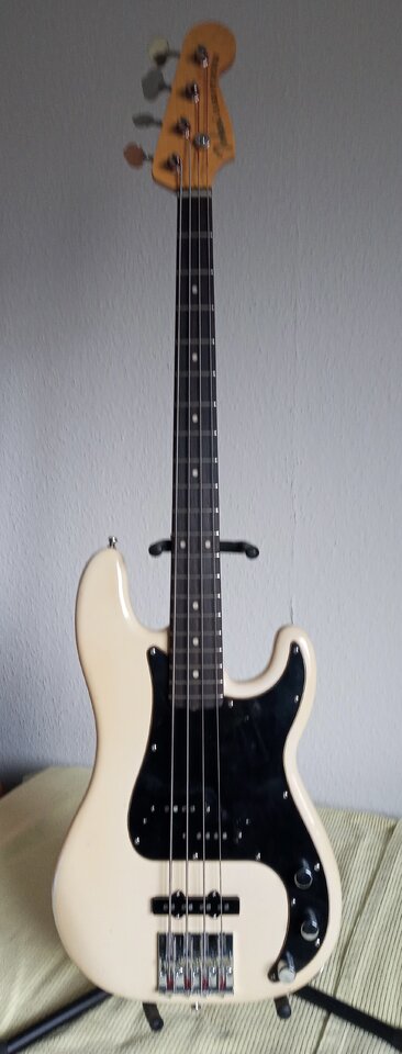 Das ist ein Fender AVRI P-Neck mit 44er Sattelbreite und relativ flachem Profil. Einer der besten Hälse, den ich je in der Hand hatte.Schöner Hals, so von weitem![]()