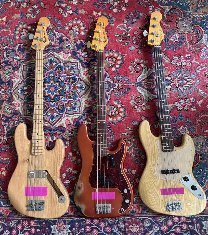Sehr leichter Squier Body in schwarz (mit bisschen Sparkle drin), Squier Jazz Bass Hals (mattschwarze Folie aufm Headstock), Bartolini PUs, Richter Elektrik, die restlichen Teile günstig zusammengekauft. Muss ihn noch ein bisschen einstellen und ordentliche Saiten aufziehen, spielt sich aber schon jetzt vernünftig.