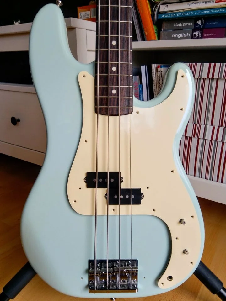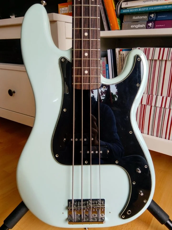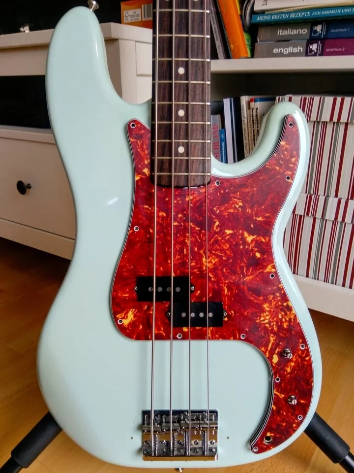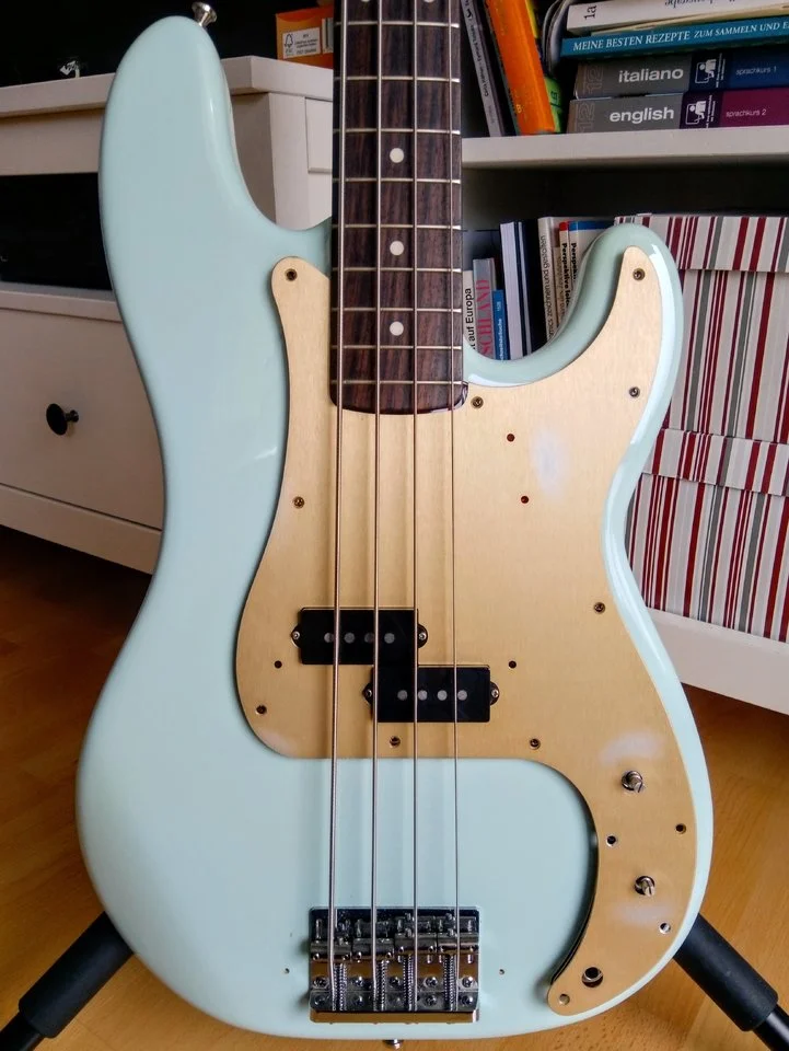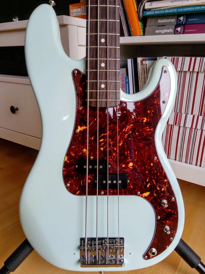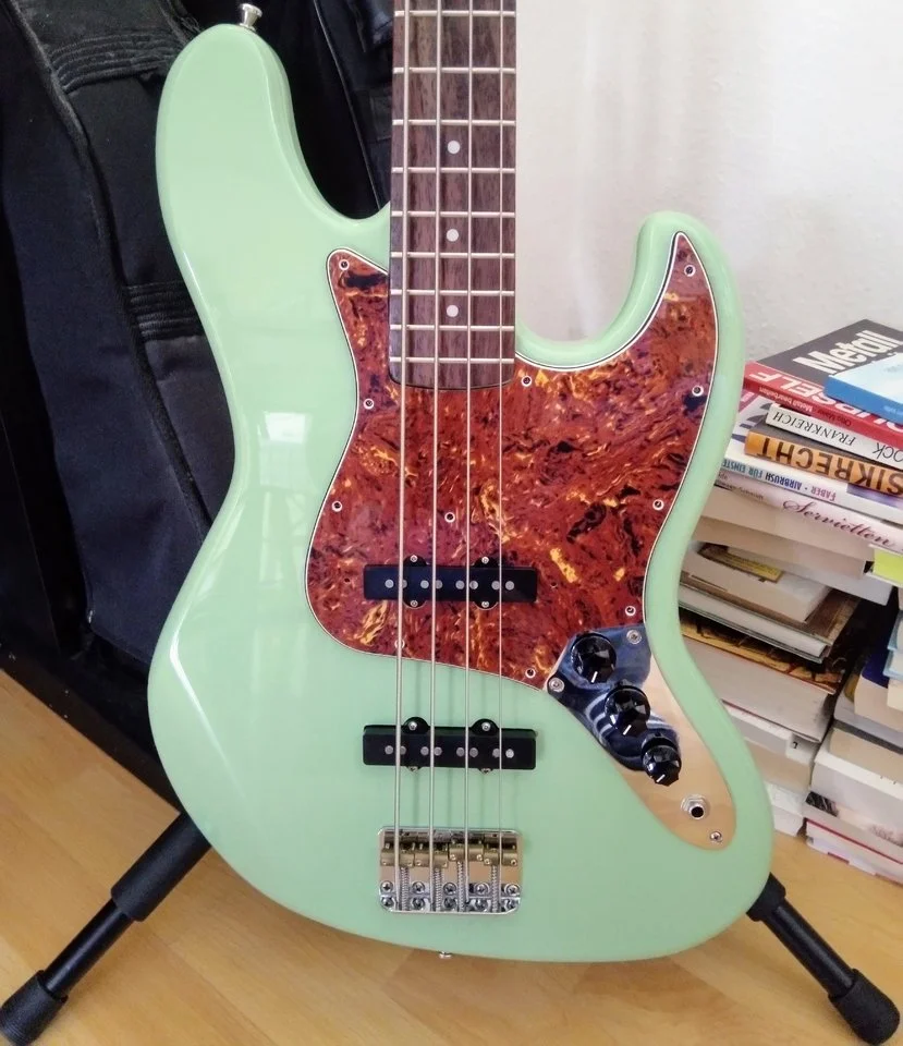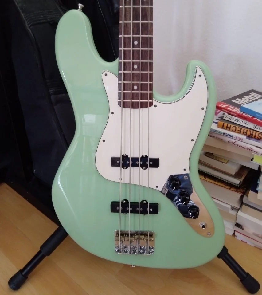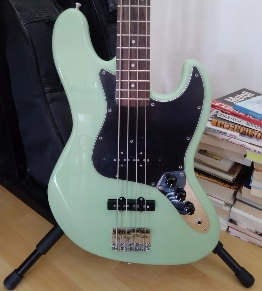 Ich glaube, den hatte ich auch ganz kurz im Augenwinkel, weil ich die blauen Ahorn-Wölkchen so nett fand. Aber die Vernunft hat gesiegtEin Charvel PJ Bass,