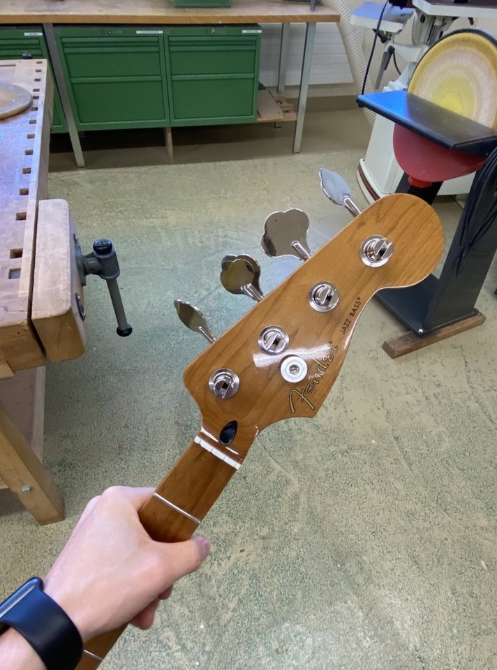 TraurigAm Mittwoch konnte ich meinen Roasted Maple J-Neck beim Musikgeschäft abholen. Darauf folgt die Geschichte meiner bescheidenen handwerklichen Fähigkeiten...
