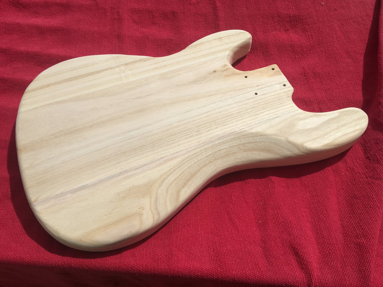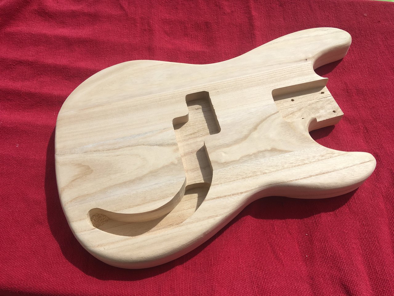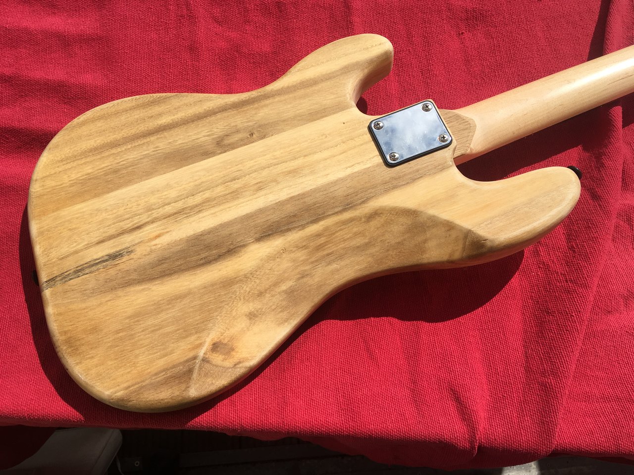 Es ist nicht das schönste Holz, oft passt es aber. Für die PickGuard-Schrauben habe ich Dübel eingeleimt.