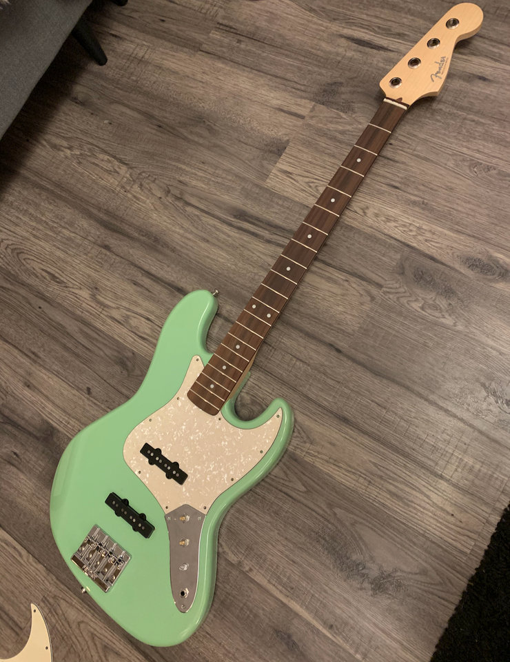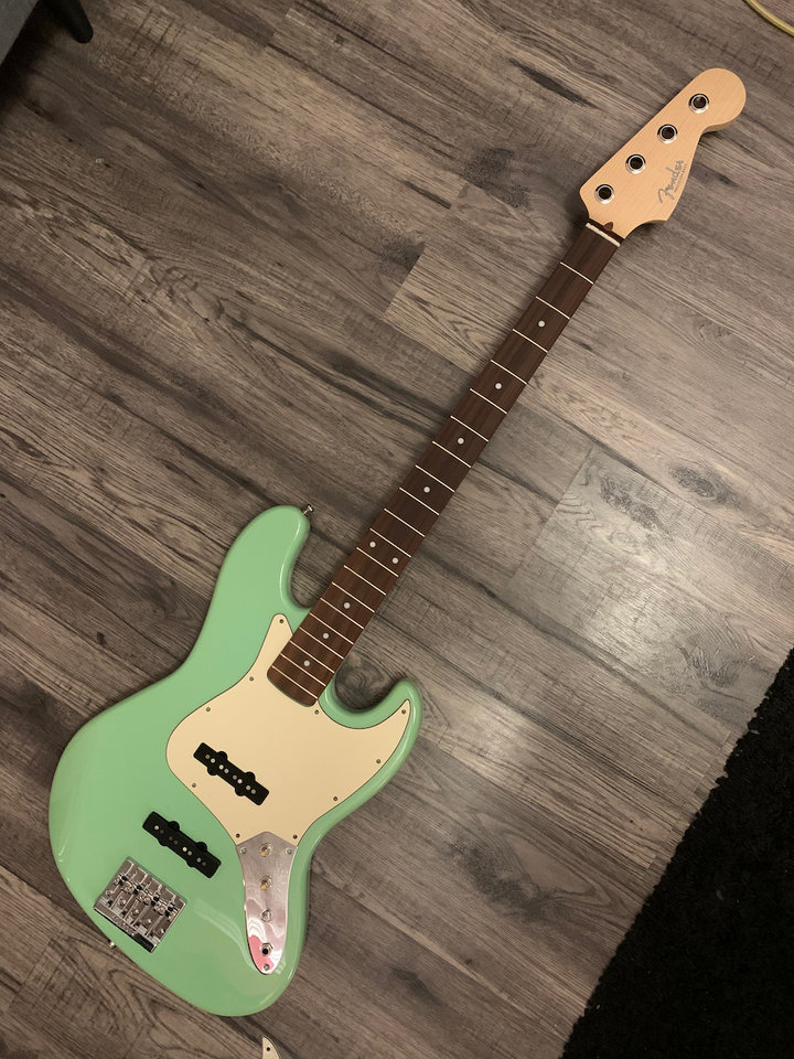 - Hals: Squier Precision Bass (MII) mit Decal von croxguitars und Vintage Tint von Forester Guitars