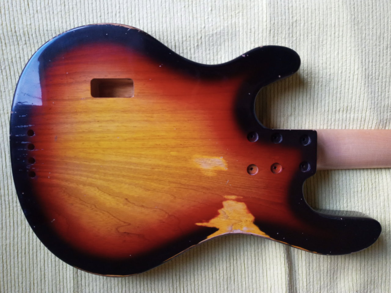 Über die Feiertage wird gebaut! Der superschön gemaserte Hals ist von einem Fame MM400. Elektrik habe ich quasi doppelt hier, einmal John East 2-Band, einmal die altbekannte 2-Band vom Musikding. Pickups werden entweder der Rockinger MM oder ein Bassculture aus einem Hotwire-Bass. Mechaniken sind Schaller BML, die Brücke ist ein MM-Replacement mit den im Body versenkten Befestigungsbolzen. Ich freu mich gerade...![]()