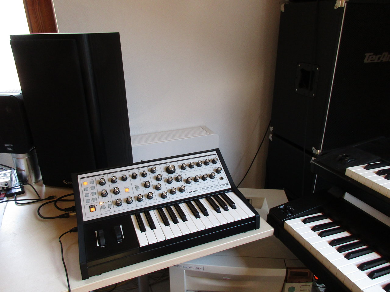 die Tastatur läßt sich nach hinten schieben. der subwoofer darunter kommt auch nur selten zum Einsatz.