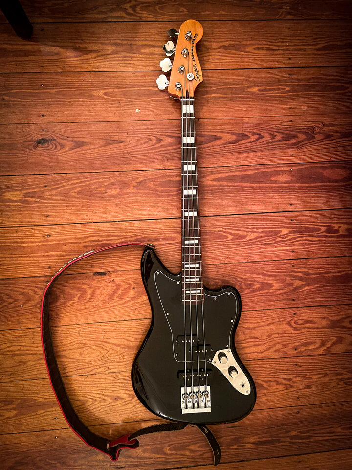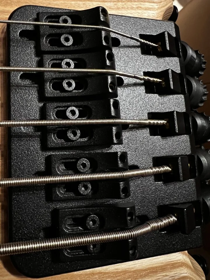 Grad frisch. Gebrauchtkauf.. 32“. Aufgefrischt mit: D-Tuner, Hipshot-Bridge, Ton-Kondensator am Bridge PU, Tonerider Pickups, DR Pure Blues 45-105… und sauber eingestellt. Perfekter Rockbass für mich. Jetzt darf der Schrammen bekommen. Das Ding ist schwer… und knarzt… aber nicht zu doll.