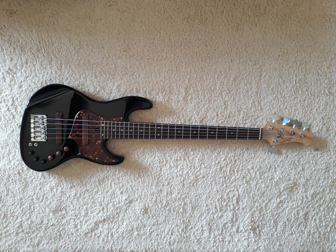Grad frisch. Gebrauchtkauf.. 32“. Aufgefrischt mit: D-Tuner, Hipshot-Bridge, Ton-Kondensator am Bridge PU, Tonerider Pickups, DR Pure Blues 45-105… und sauber eingestellt. Perfekter Rockbass für mich. Jetzt darf der Schrammen bekommen. Das Ding ist schwer… und knarzt… aber nicht zu doll.
