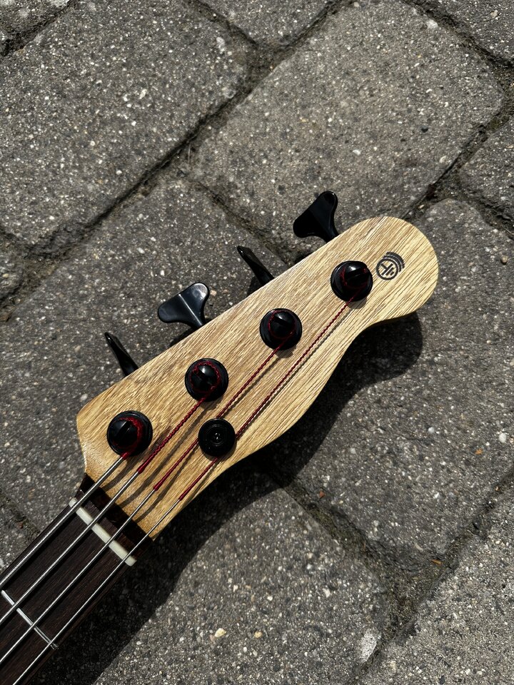 Oh, sehr schick.Ich bin absolut sprachlos – mein Traum-Bass ist angekommen, und selten hat mich ein Instrument so "gekriegt". Hier steckt kompromisslose Qualität, echte Leidenschaft und das Know-how von drei herausragenden lokalen Manufakturen drin: Der Hals stammt von KODEX AUDIO. Sie haben auch den kompletten Bass zusammengebaut, den Body gefinished, eingestellt und alles rockfertig gemacht. Der Jazz Body kam von SUWAK CUSTOM GUITARS. Die aktiven MM style Pickups sind Omnias von NOVA INNOVATIVE PICKUP SYSTEMS. - Der Bass ist ein absolutes Rock (oder gar Metal) Brett.