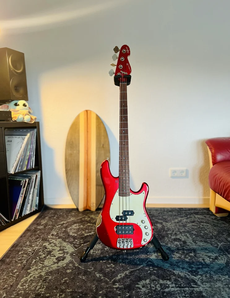 Sehr schickIch bin absolut sprachlos – mein Traum-Bass ist angekommen, und selten hat mich ein Instrument so "gekriegt". Hier steckt kompromisslose Qualität, echte Leidenschaft und das Know-how von drei herausragenden lokalen Manufakturen drin: Der Hals stammt von KODEX AUDIO. Sie haben auch den kompletten Bass zusammengebaut, den Body gefinished, eingestellt und alles rockfertig gemacht. Der Jazz Body kam von SUWAK CUSTOM GUITARS. Die aktiven MM style Pickups sind Omnias von NOVA INNOVATIVE PICKUP SYSTEMS. - Der Bass ist ein absolutes Rock (oder gar Metal) Brett.