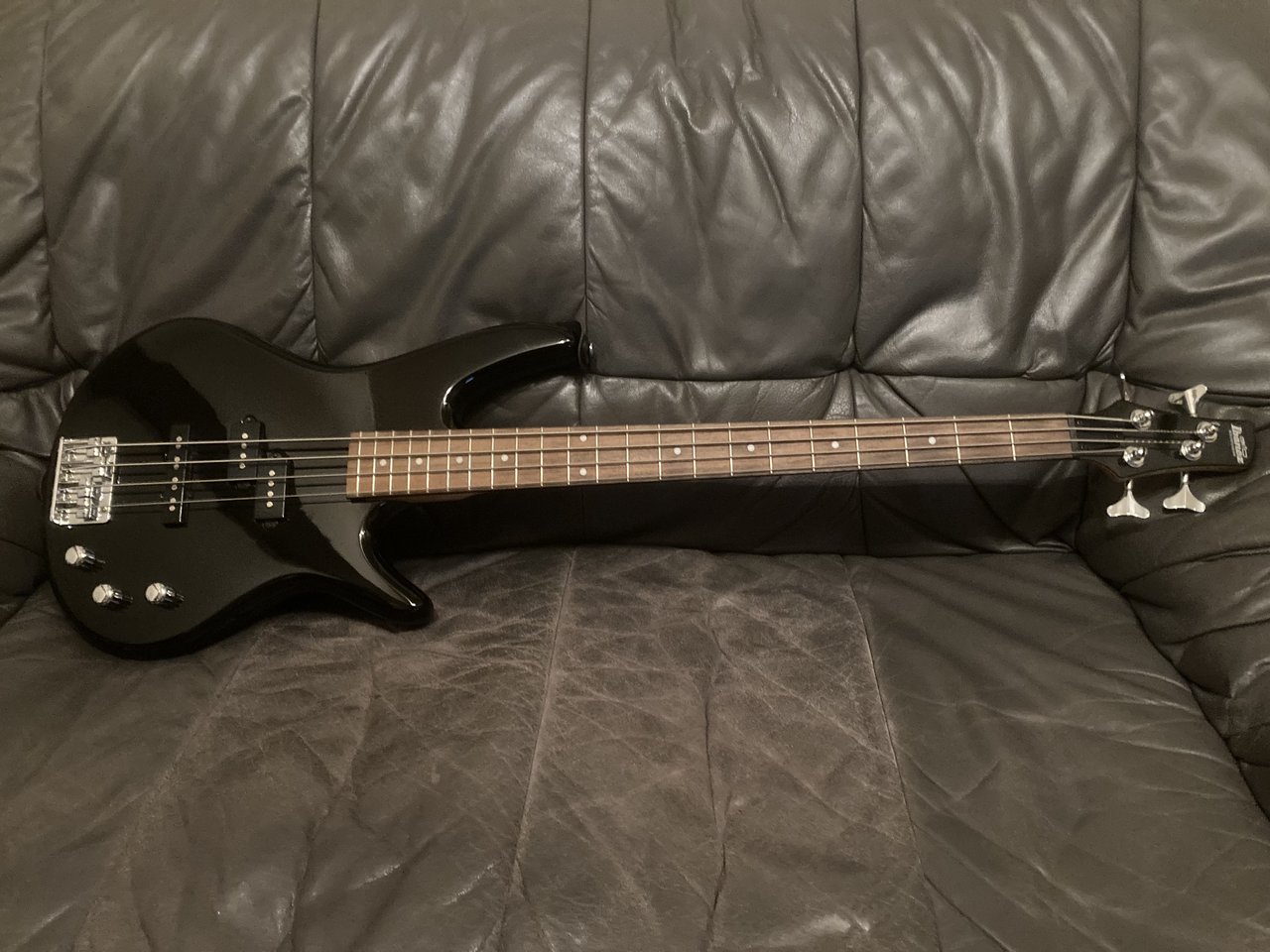 Ibanez IJSR190, Bj. 2011 (lt. Seriennummer), Made in China. Den hab ich mir aus Nostalgie gekauft, da ich in grauer Vorzeit einen passiven Ibanez SR200 gespielt habe. Form, Gewicht und der flache Hals sind immer noch absolut nach meinem Geschmack. Allerdings ist der Klang nicht (mehr) so meins, ist halt recht "modern". Für Rock und härter bestimmt nicht verkehrt, passt aber nicht mehr zu dem, was ich damit machen möchte. Vielleicht experimentiere ich hier mal mit anderen Pick Ups. Momentan ist der Bass eigentlich immer weggepackt im Karton und wurde für das Foto extra wieder rausgekramt.