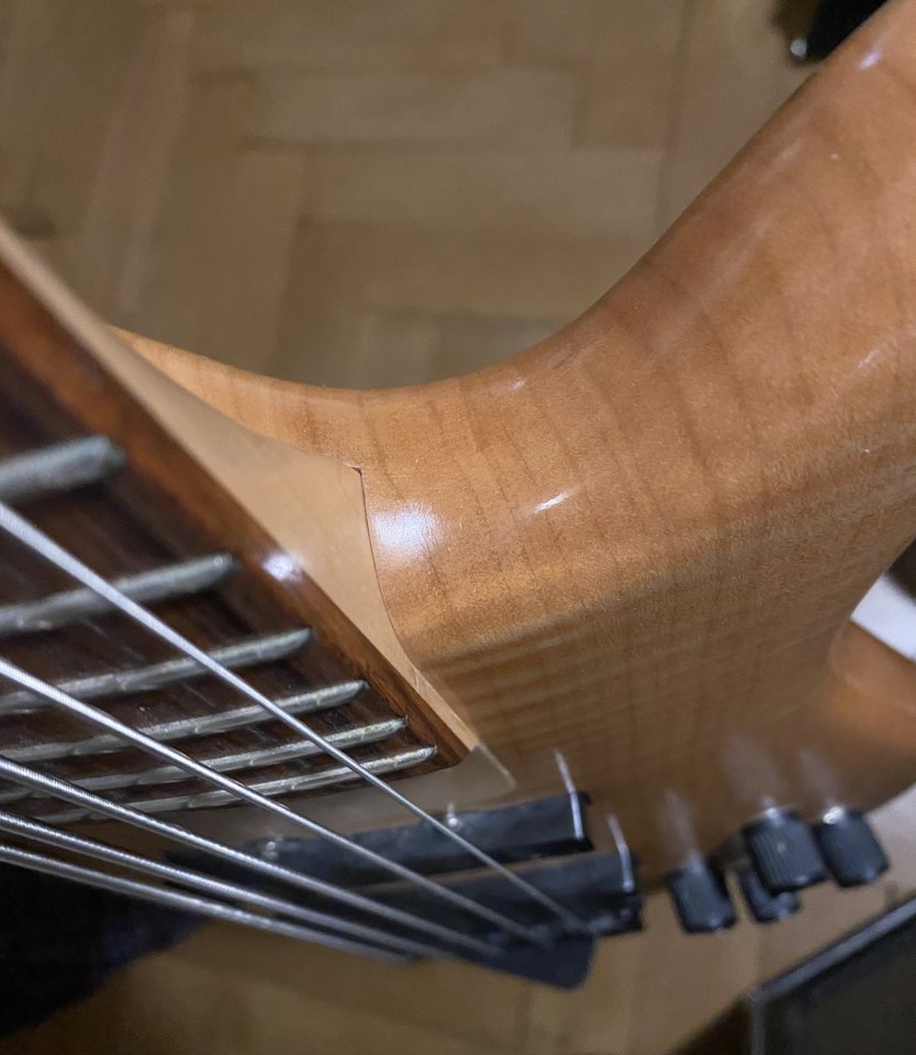Mein „Testbass“ vor dem Stingray, ich wollte wissen, ob ich überhaupt wieder 5er spielen will und hab mir diesen „Billigbass“ gekauft. Yamaha BBG5s, Elektronik war hinüber, da ist jetzt einen GloKla 2 Band drin. Die PUs wechsel ich Weihnachten gegegn zwei Delano JCs, darüber kommen Soapbar Kappen.