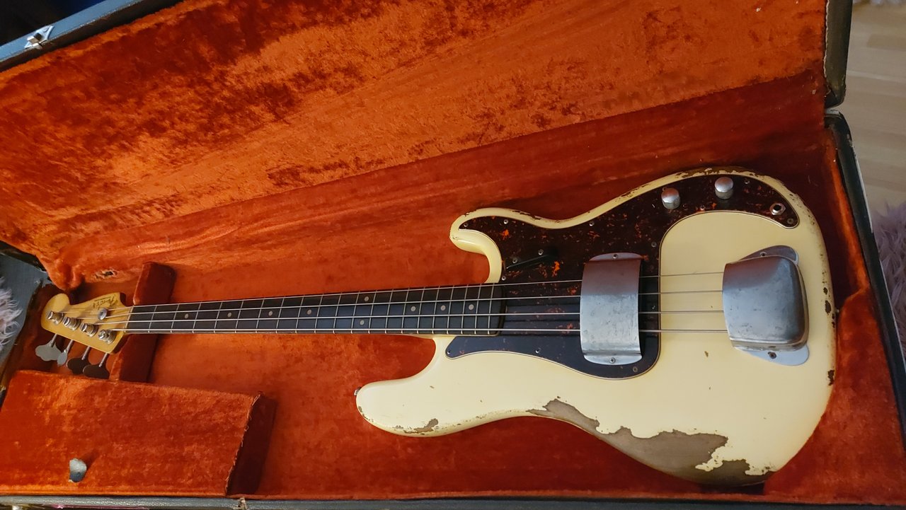 Surfgreen ist ne geile Farbe95er Fender American Standard Preci, wir feiern dieses Jahr ZehnhÀhriges. Damals war er schwarz, seit acht Jahren ist er Surf Green, wollte schon seit langem einen Bass in der Farbe haben. So gut wie immer Flats drauf, der wird mir nicht langweilig, spiele den in meiner Band und auch zu Hause fast durchweg. Hab zwar stets einen Zweitbass als Ersatz da (der wechselt ab und an), aber wenn ich den gelegentlich bei 'ner Probe spiele, vermisse ich eigentlich jedes mal meinen Surf Green Preci.