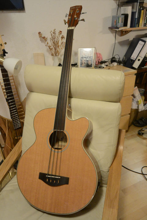 Beim Fretless-Bass sitzen die Sattelkerben so knapp ĂŒber dem Griffbrett, dass ein Nullbund zu tief auftrĂ€gt.Warum hast du den Sattel versetzt statt einen Nullbund einzusetzen?