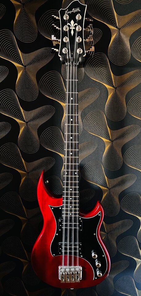 Cooler Bass - und eine coole TapeteGestern ist Bass Nr. 10 eingezogen, ein Hagström HB-8. Spiel mit dem Gedanken ihn umlackieren zu lassen, aber mal sehen. So ist er erstmal ein experimenteller Zeitgenosse.